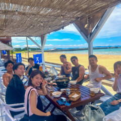 夏は、BBQをしながら、海遊びや、SUP、バナナボートなど遊びが沢山!